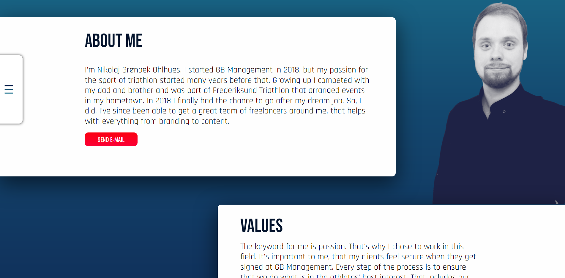 The goal of this project was to create online presentations of the athletes at GB Management. We came across all perspectives of Multimedia Design: Research, Design and Programming. Programming-wise, we used HTML, SCSS and JavaScript. Management of the code happened through GitHub.