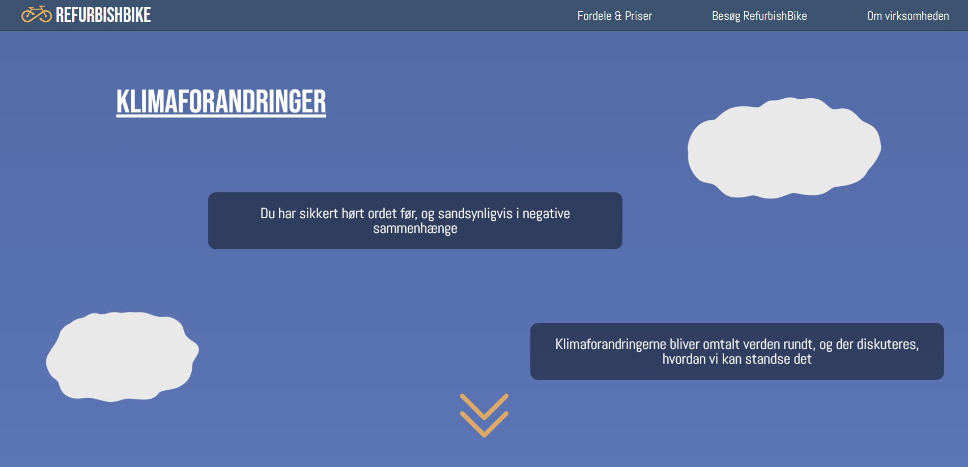 For my final project on the Multimedia Design programme at Business Academy Aarhus, I tried to develop an adventurous, yet informative web documentary(-ish) site for RefurbishBike. The site consists of HTML, CSS and a little bit of JavaScript. I went all out on playing with the styling, graphics and layout to give the site an exciting look.