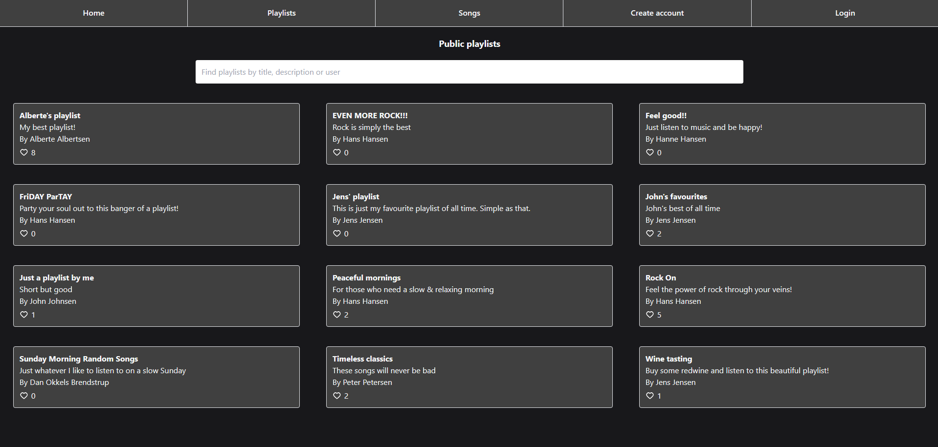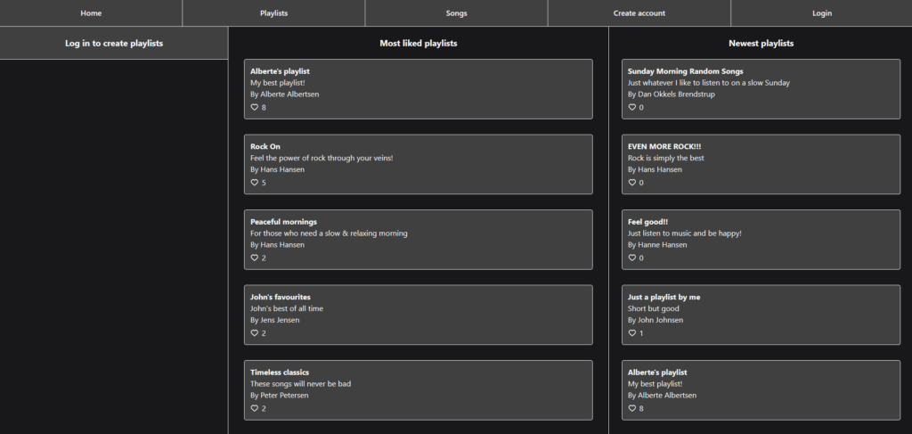 We were tasked to make a web app using the JavaScript framework Remix. In this case, I made a clone of the popular music-app Spotify, where, in my simplified version, you can create an account, login, make playlists and view others’ playlists.